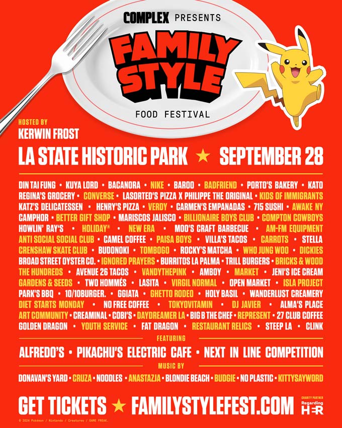 Family Style Food Festival, the first-ever festival at the intersection of food and streetwear with a heavy hitting, curated lineup of the best chefs, restaurants, brands and entertainment will return on September 28th at The Los Angeles State Historic Park, joining forces with the leading convergence culture media juggernaut, Complex, for the biggest iteration of the most hyped food festival to-date.