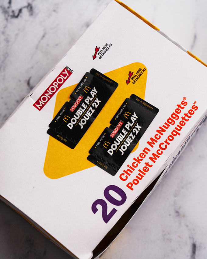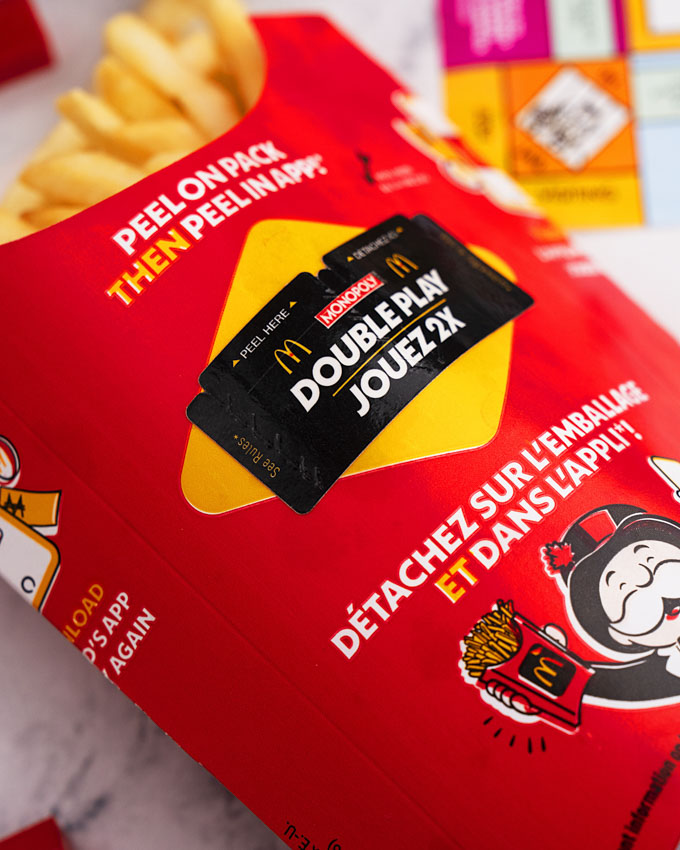 McDonald’s Canada is running the Monopoly “Double Play” Game from October 7 – November 10, 2025.