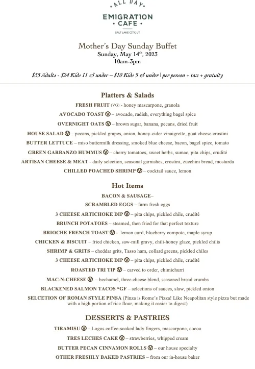 Mother’s Day Salt Lake City 2023: Restaurant Special Menus
