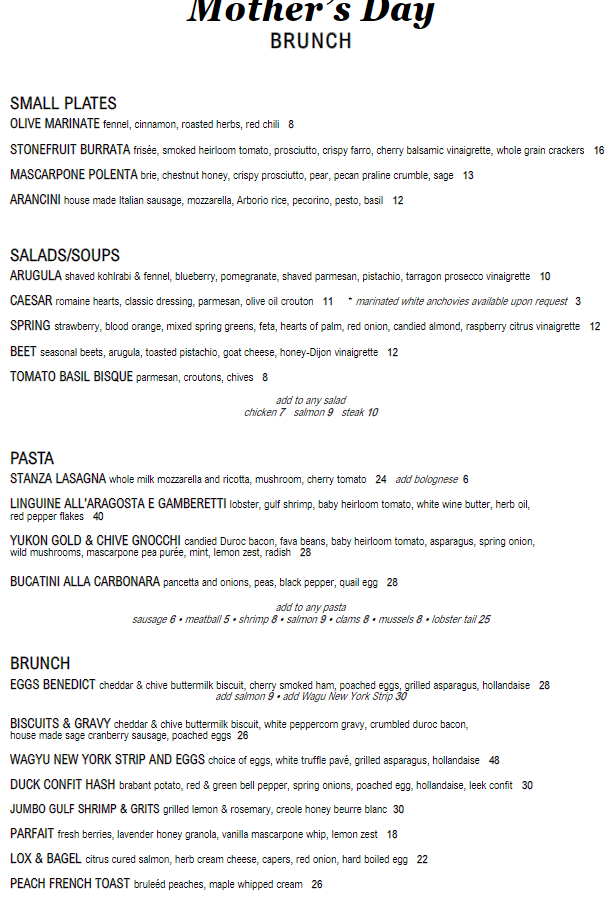 Stanza Italian Bistro & Wine Bar is offering a Mother’s Day brunch menu on May 14.