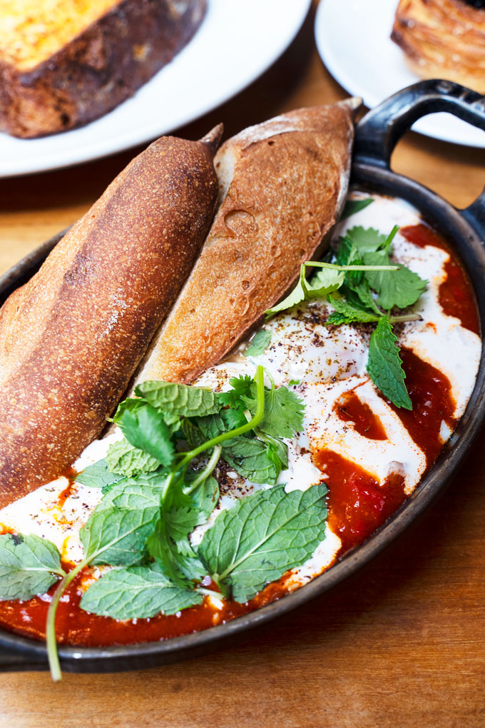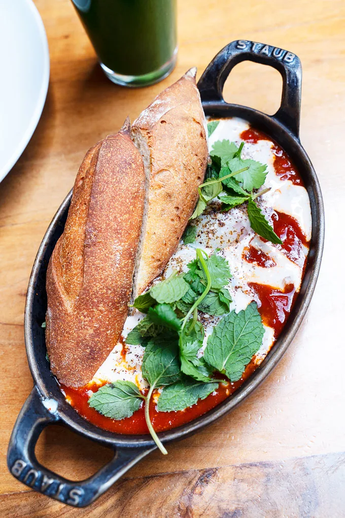 The Shakshouka was aromatic and tasty and featured black kale, chickpeas, yogurt, eggs cooked to perfection and served on top of a bed of spicy tomato sauce. The food was delivered with a crisp baguette that was excellent for mopping up all the wonderful sauce.