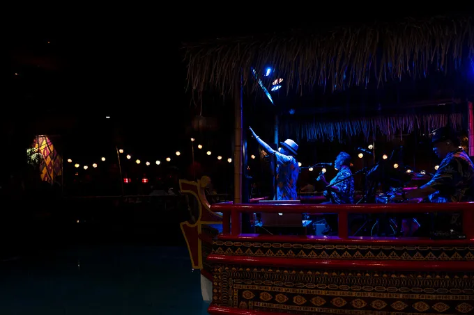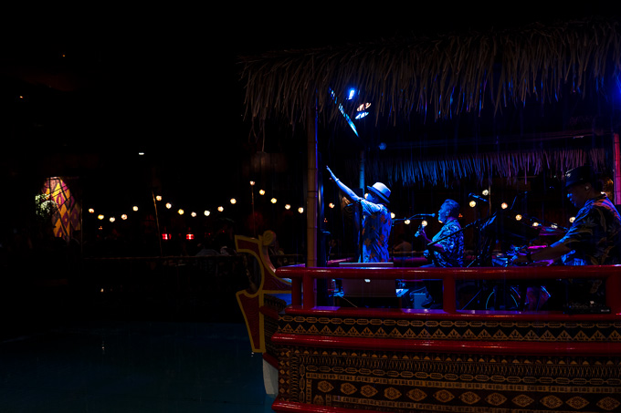 Guests are treated to performances by a talented band that takes to the floating stage in the middle of the lagoon.
