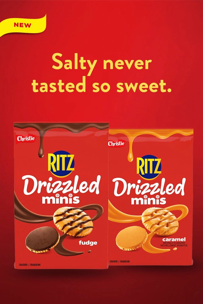 RITZ Crackers has introduced a new sweet-and-salty snack option across Canada with the arrival of RITZ Drizzled Minis, bringing chocolate and caramel flavours to the brand’s familiar buttery cracker bite.