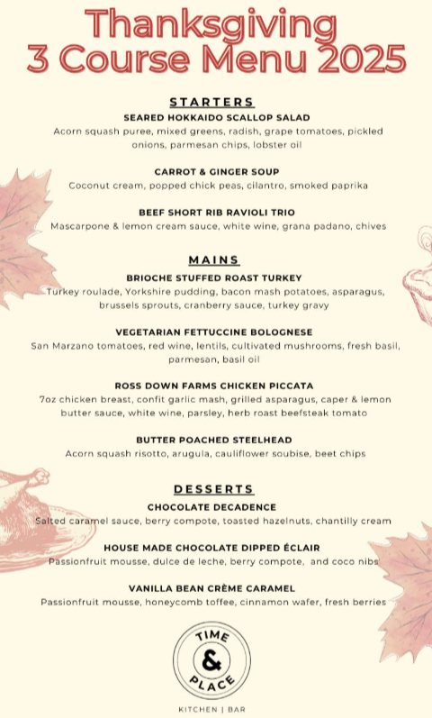 Time & Place in Burnaby is serving a limited-time three-course Thanksgiving menu from October 10 to 13.