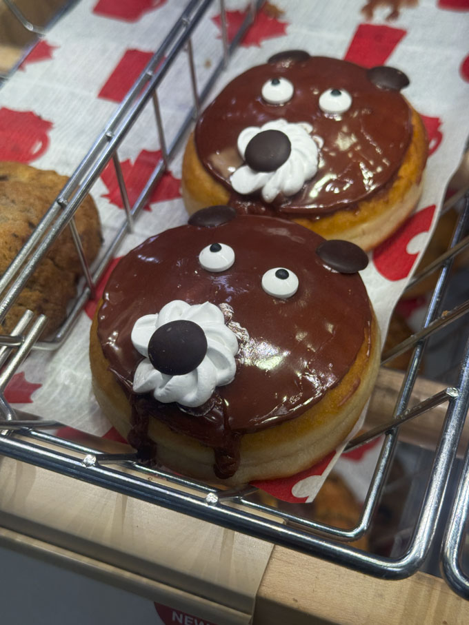 The holiday menu continues with treats such as the Crème Brûlée Filled Timbit, Holiday Bear Donut, Chocolate Hazelnut Filled Muffin, Brown Sugar Protein Iced Latte containing 17 grams of protein per medium size, and the Brown Sugar Cream Coffee.