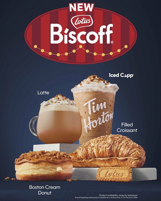 Fans of cold drinks can try the Biscoff Iced Capp, which gives Tim Hortons’ signature frozen beverage a seasonal spin with blended Biscoff cookies and a cookie topping.