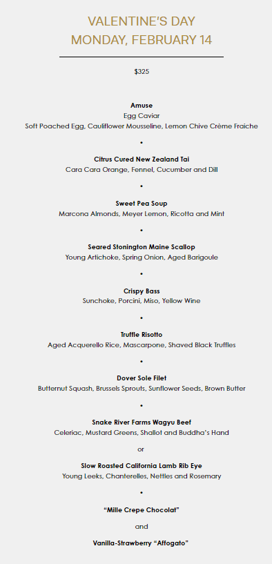 EP&LP will be offering a 5 course Valentine’s Day Los Angeles 2022 dinner menu at $95 per person. Reservations for February 14 from 6 pm – 9:45 pm.