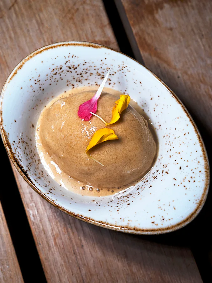 House-made sorbet with rotating flavours, offering a refreshing and lighter finish after richer dishes.