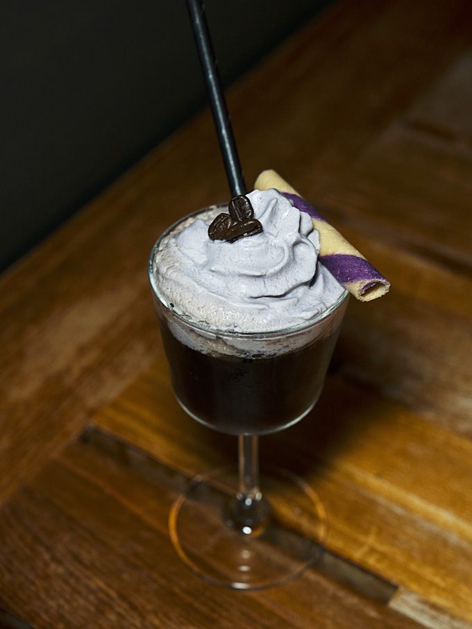 Vodka, coffee liqueur, matcha, espresso, ube foam
